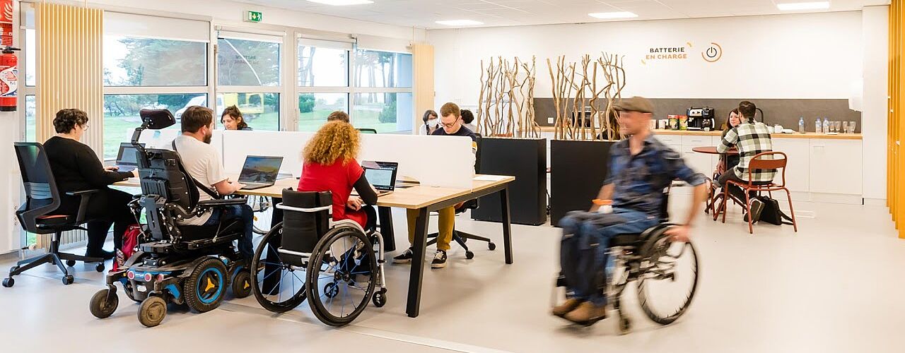 Le coworking c'est un centre d'innovation au service du handicap qui est situé à Ploemeur dans le Morbihan et qui est au coeur du centre de rééducation de Kerpape