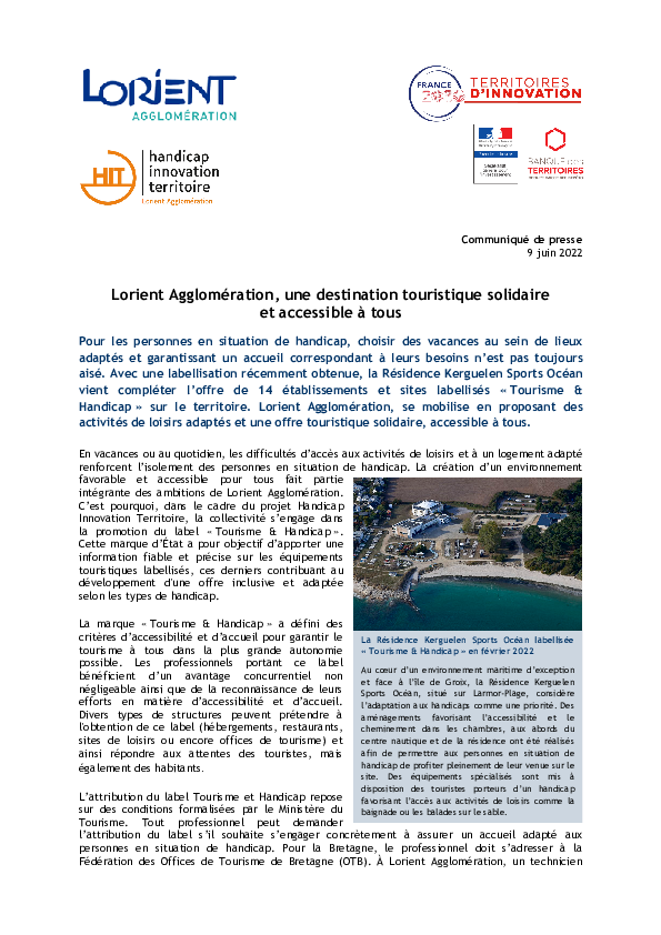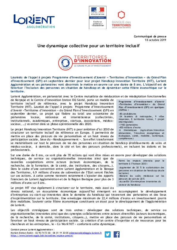 Communiqué de presse :Lorient Agglomération lauréat « Territoires d’innovation » PDF - 902,3 KB